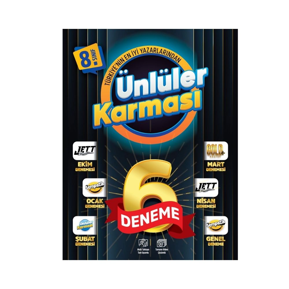 8. Sınıf 6’lı Karma Denemeler Ünlüler Karması Yayınları tarafından 8. sınıf öğrencileri için özel olarak hazırlanmış bir deneme setidir. Bu set, öğrencilerin farklı derslerdeki bilgilerini pekiştirmeleri ve sınavlara etkili şekilde hazırlanmaları için tasarlanmıştır.