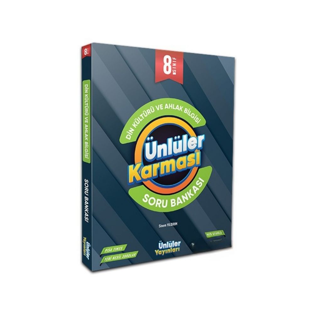 8. Sınıf Din Kültürü ve Ahlak Bilgisi Soru Bankası – Ünlüler Karması, 8. sınıf öğrencilerinin LGS ve okul sınavlarına hazırlık sürecinde Din Kültürü ve Ahlak Bilgisi konularını etkili bir şekilde öğrenmelerini sağlayan kapsamlı bir kaynaktır. Sorular, öğrencilerin konuları pekiştirmesine ve sınav pratiği yapmasına yardımcı olur.