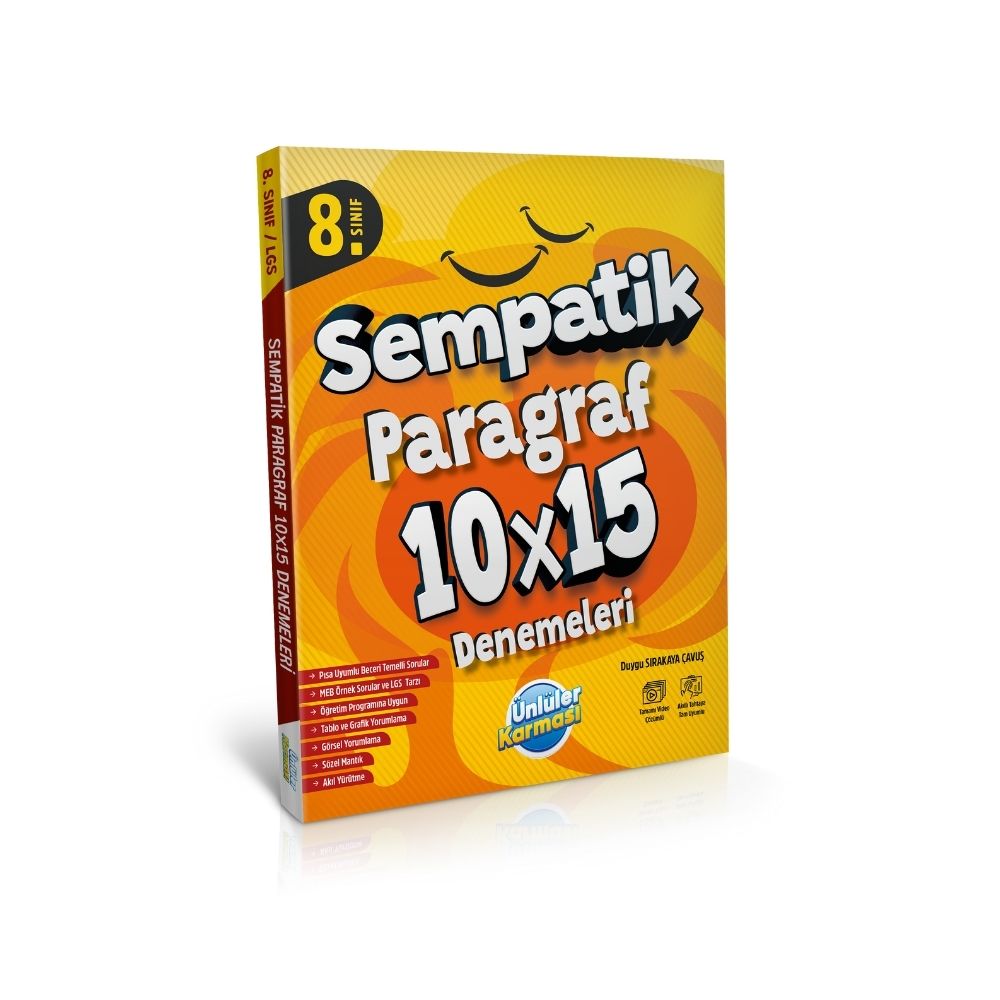 8. Sınıf Sempatik Paragraf 10×15 Deneme Ünlüler Karması Yayınları tarafından 8. sınıf öğrencileri için özel olarak hazırlanmış kapsamlı bir paragraf ve sözel beceri deneme setidir. Bu set, öğrencilerin okuma-anlama, paragraf bilgisi ve sözel derslerdeki yetkinliklerini pekiştirmeleri için tasarlanmıştır.